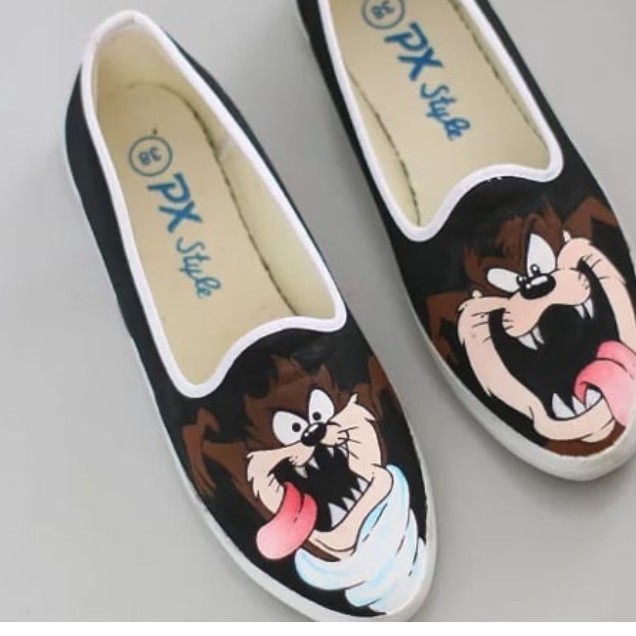 Sepatu kanvas lukis saat ini menjadi tren di kalangan remaja. Beda sepatu beda cara dan bentuk lukisannya.